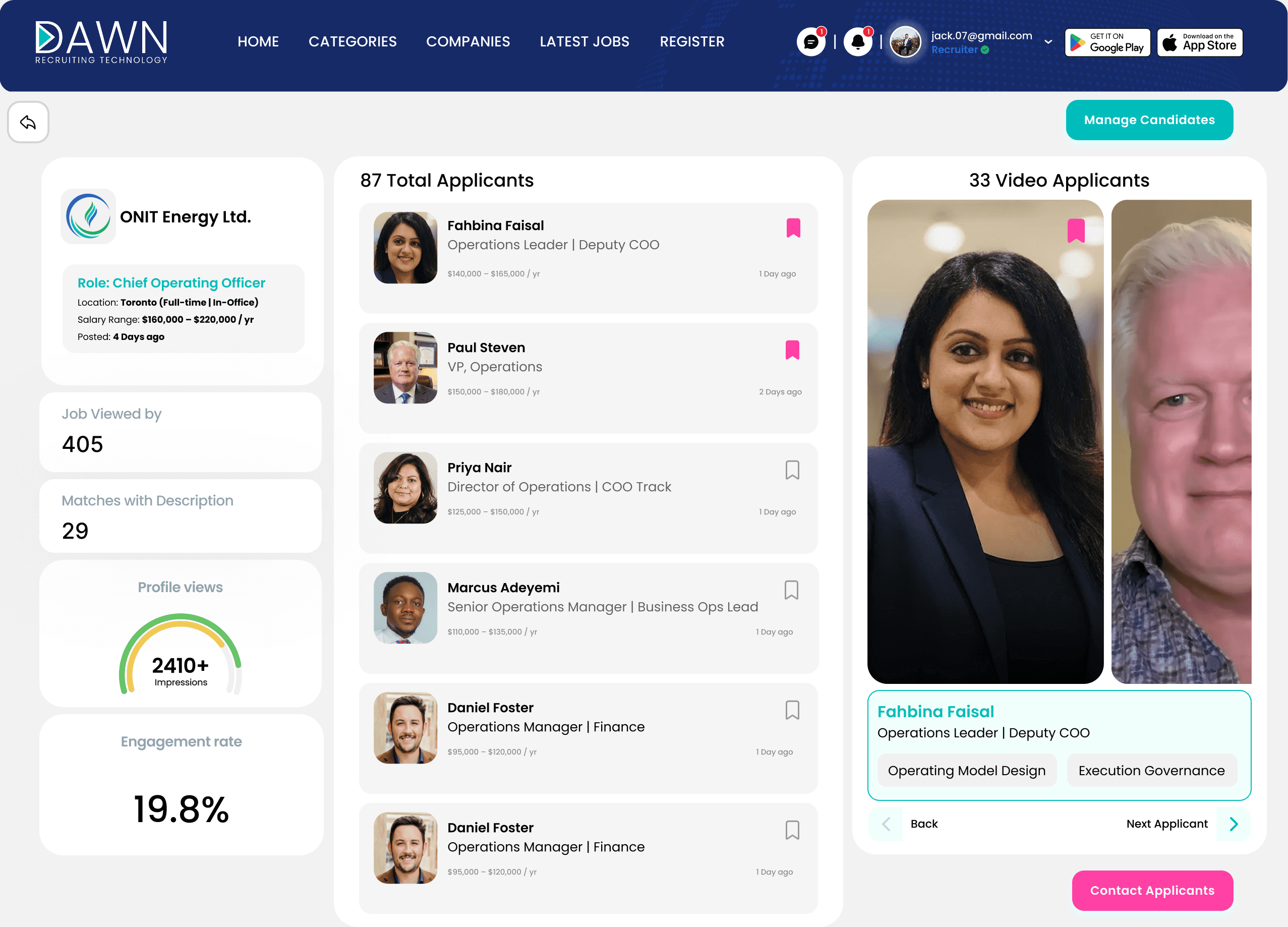 Because every candidate and employer connects through the Dawn platform, we see hiring trends in real time — not months later in a report. Our video-based system gives us unmatched insight into candidate behavior, communication quality, and engagement levels, allowing us to forecast shifts in the talent market and guide clients with smarter, data-backed hiring strategies.